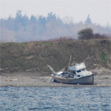 As we continue North through Hale Passage. we pass by a gravel operation that I thought was interesting. How do you get permits for such an endeavor in today's PC climate? And I had to get a pic of how expansive Hales Passage really is, even though it looks narrow on the charts. Then there's the old fishin' boat on the beach.....probably retired. |