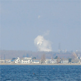 Beyond Gooseberry Point, there's Lummi Bay with the Conoco Phillips refinery at Ferndale in the distance. Point Migley defines the north end of Lummi Island. |